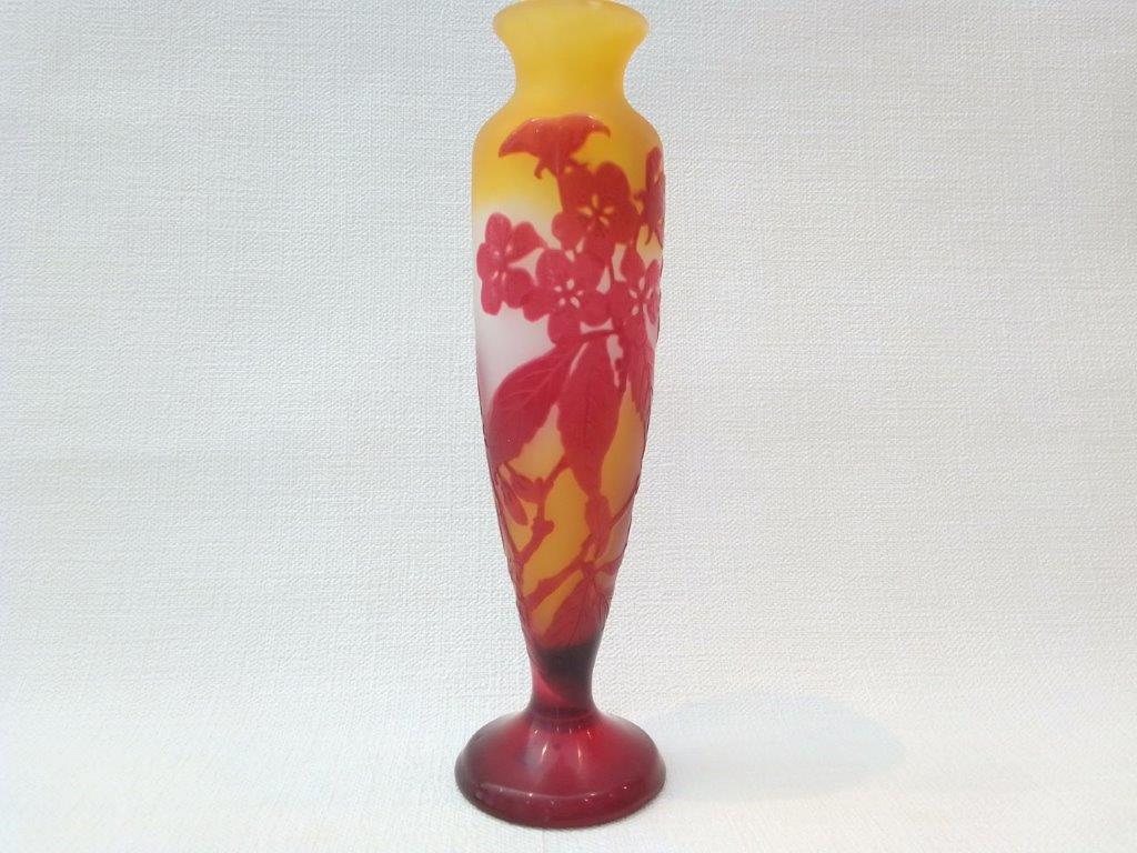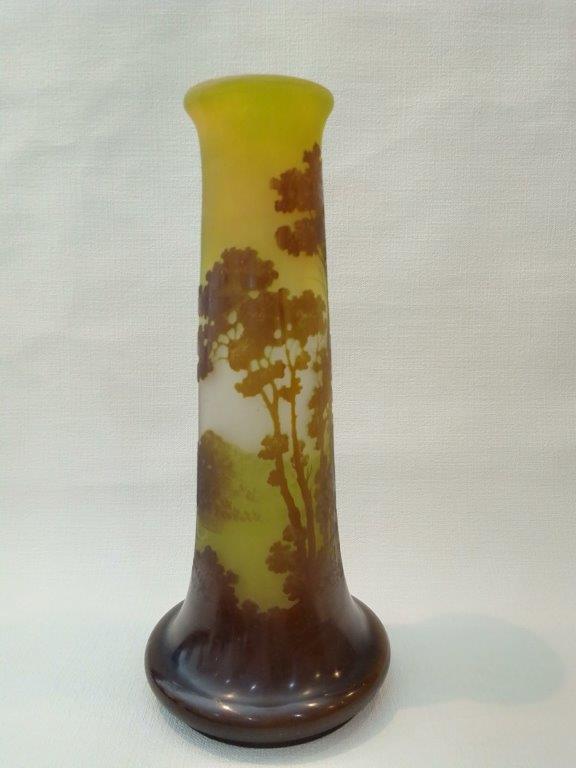 買取品名:エミール・ガレ 木立湖水風景文花器 高さ34.5cm