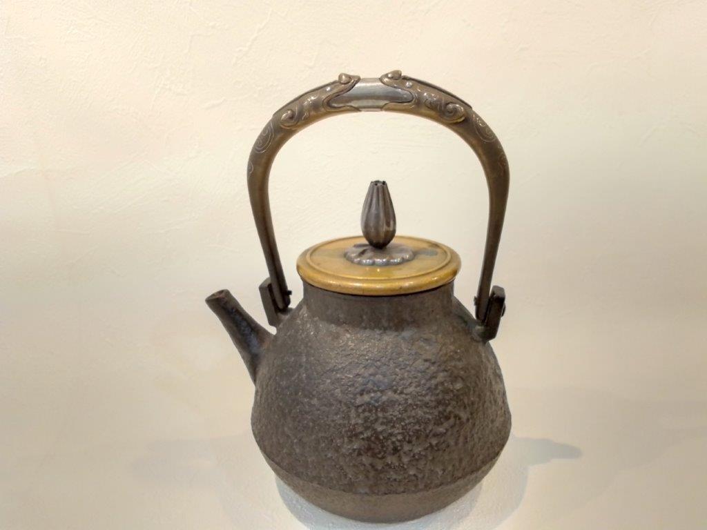 買取品名:大西浄寿作 鉄瓶 青銅象嵌堤手 作家銀ツマミ