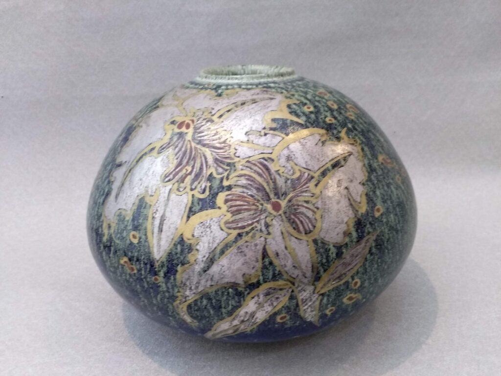 鈴木健司 金銀彩カトレヤ花瓶を買取させていただきました。