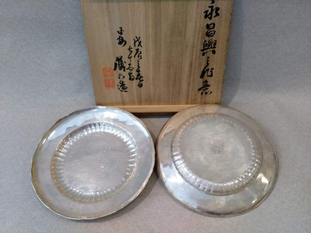 二世秦蔵六造 銀製菓子器10枚を買取させて頂きました。